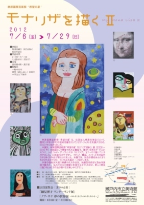 林原国際芸術祭‘希望の星’ は、社団法人林原共済会によって、障がいがありながらも芸術活動を行っているアーティストを支援するため、2003年に始まりました。本展は、林原国際芸術祭‘希望の星’「モナリザを描く」展(2008 ~2010 年)の続編として開催された公募展で、障がいのあるアーティストたちに、レオナルド・ダ・ヴィンチの「モナリザ」をテーマに描いていただきました。イタリア、韓国、ネパールなど国外からも多くの作品が寄せられました。本展では、独自の感性あふれる作品の中から、54 作品を紹介します。