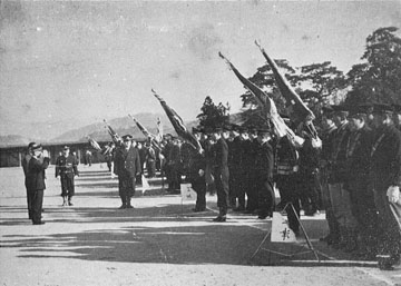 台風17号自衛隊・町本部員の救援出発準備(町役場玄関前)
