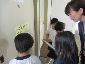 2年生が1年生に学校内のことを教える、「がっこうたんけん」をしました。これまでに2年生は案内したい場所のクイズを考えたり、1年生を安全に連れて行くために気をつけることを話し合ったりと、昨年教えてもらったことを思い出しながら活動をしました。1年生も2年生の話すことを聞きながら、学校内を探検することができました。写真は校長室での探検の様子です。