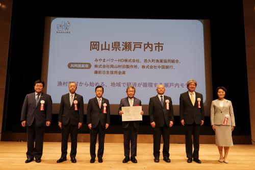 ▲西村明宏環境大臣(一番左)から選定証が授与されました